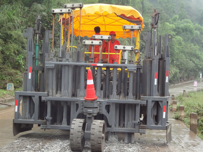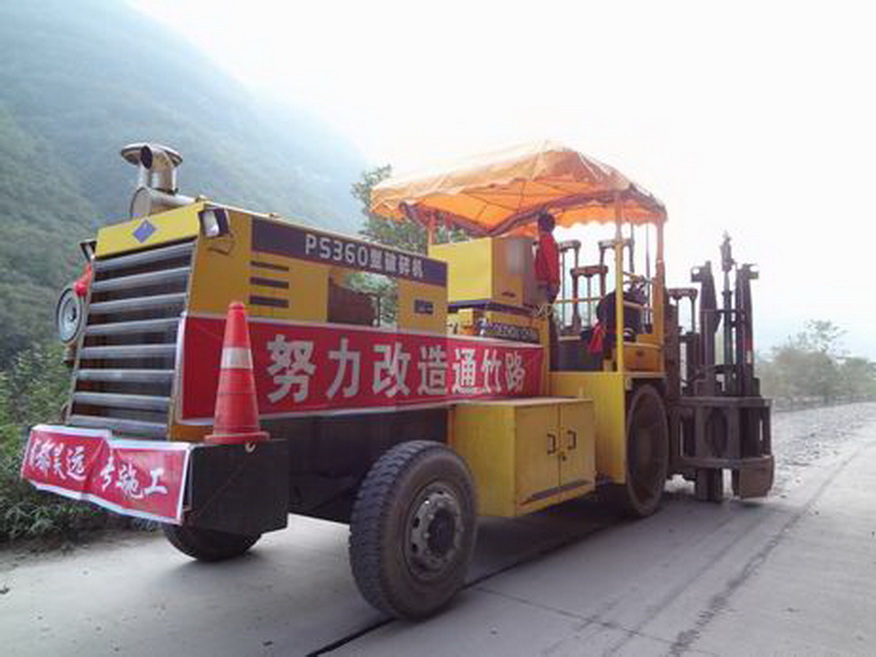多錘頭水泥路面碎石化機械正在通江施工作業(yè)