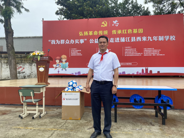 6月1日,在一年一度的“六一”兒童節(jié)之際,由中共蒲江縣委宣傳部、蒲江縣教育局、共青團(tuán)蒲江縣委、成都高新區(qū)志愿者協(xié)會主辦,成都高新區(qū)芳草義工總隊(duì)、蒲江縣志愿者協(xié)會、蒲江縣西來九年制學(xué)校承辦的暖意濃濃的愛心活動“我為群眾辦實(shí)事,公益助學(xué)進(jìn)校園”志愿服務(wù)活動在蒲江縣西來鎮(zhèn)九年制學(xué)校舉行。