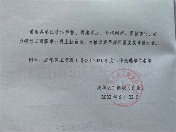 會議書面?zhèn)鬟_學習了習近平總書記來川視察時的重要講話精神傳達提綱、黨的十九屆六中全會、全聯(lián)十二屆五次執(zhí)委會議、省第十二次黨代會、省聯(lián)十一屆六次執(zhí)委會議、市第十四次黨代會、市工商聯(lián)(總商會)十二屆五次執(zhí)委(擴大)會議、區(qū)委八屆三次全會暨區(qū)委經(jīng)濟工作會議精神,審議通過了區(qū)工商聯(lián)七屆而次執(zhí)委會工作報告、《會員會費收支財務(wù)管理辦法》、《會費管理委員會組成人員建議名單》(草案)、《會費監(jiān)督委員會組成人員建議名單》(草案)、《第七屆兼職副主席、副會長輪值暫行辦法》、《企業(yè)家定期健康體檢辦法》(試行),通報了2021年度商會會費收支情況,大會總計表彰了56家工作先進單位。會上,區(qū)工商聯(lián)向我區(qū)民營企業(yè)推介了成華區(qū)招商引資政策,并就“以商招商”工作對與會人員提出要求。