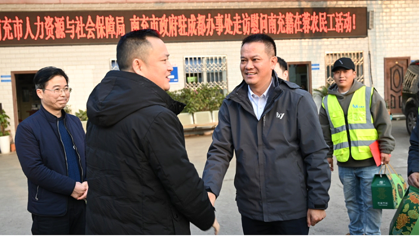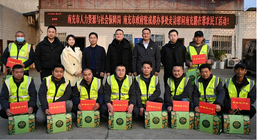 5日下午,南充市人力資源社會(huì)保障局副局長(zhǎng)曾松林、駐成都辦事處領(lǐng)導(dǎo)一行代表市委、政府來(lái)到四川昊遠(yuǎn)建設(shè)工程有限公司走訪慰問(wèn)南充籍在蓉務(wù)工人員代表。并向昊遠(yuǎn)建設(shè)公司南充籍農(nóng)民工發(fā)放了慰問(wèn)品和慰問(wèn)金,同時(shí)向大家致以節(jié)日的祝賀和誠(chéng)摯地慰問(wèn)。